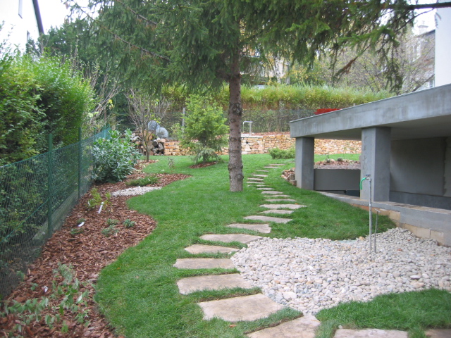 A Megbízóval közösen véglegesített kertépítészeti terv alapján vállaljuk a zöldfelület teljes körű kivitelezését, mely magában foglalja a terület előkészítését és a terep rendezéséhez szükséges gépi és kézi földmunkákat, a burkolatok és építmények kialakítását, a műtárgyak kihelyezését, és a növények beültetését egyaránt.