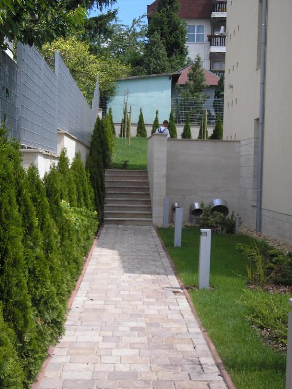 Az út- és térburkolatok adják a kert, és park alaprajzának fő vonalait. Amellett, hogy kiképzett felületüknek használhatónak és praktikusnak kell lenniük, az esztétikai hatásról sem szabad elfelejtkezni. A Megbízóval közösen kiválasztott, az említett szempontoknak megfelelő burkolattípust tervezzük és építjük a zöldfelületbe. A választék igen széles skálán mozog. Az adott terep változatossága megkívánhatja támfalak, lépcsők építését is, amelyek kivitelezése a felmerülő igényeknek, műszaki követelményeknek, a kert és az adott építmény stílusának megfelelően történik.